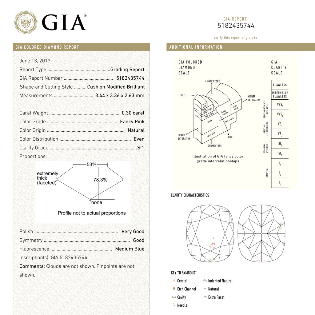 0.30ct 3.44x3.36x2.63mm GIA SI1 Fancy Pink Cushion Brilliant 🇦🇺 24103-01
