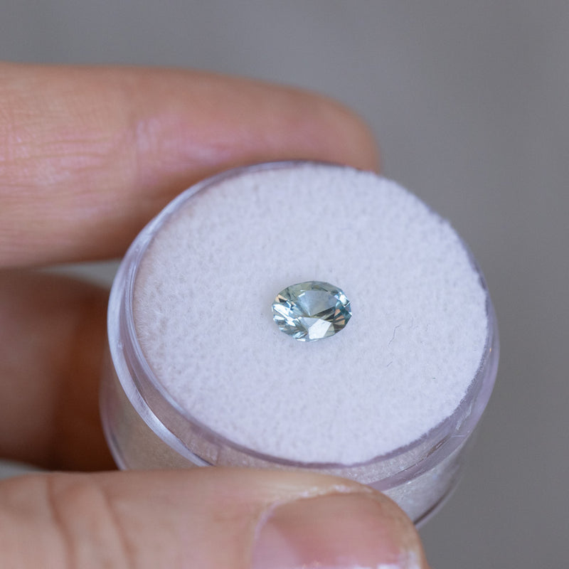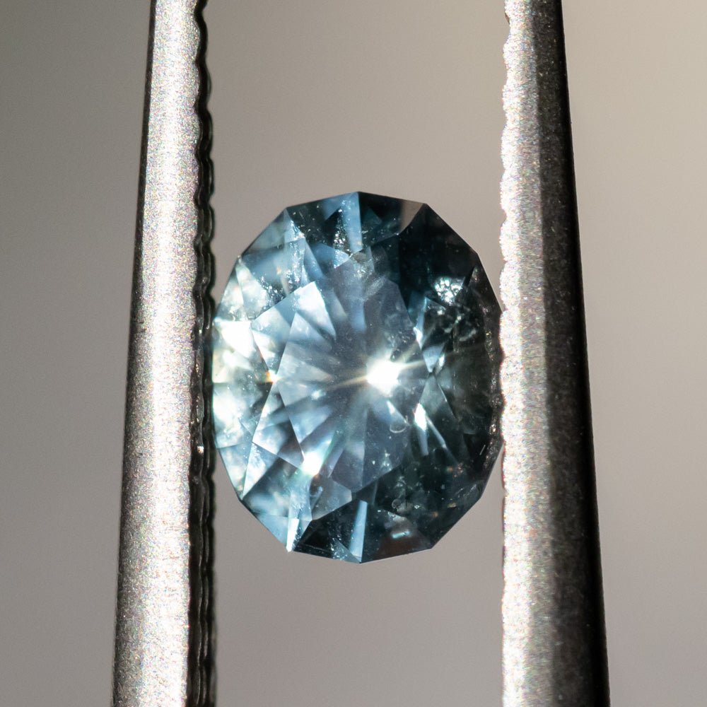 0.84CT FANCY OVAL PRECISION CUT MONTANA SAPPHIRE, SILVERY BLUE, 6.01X3.88MM