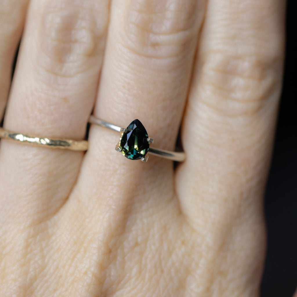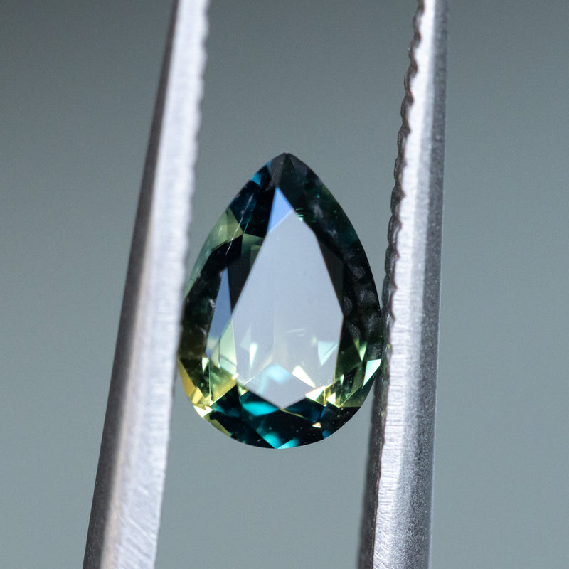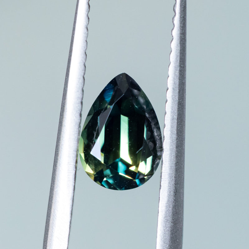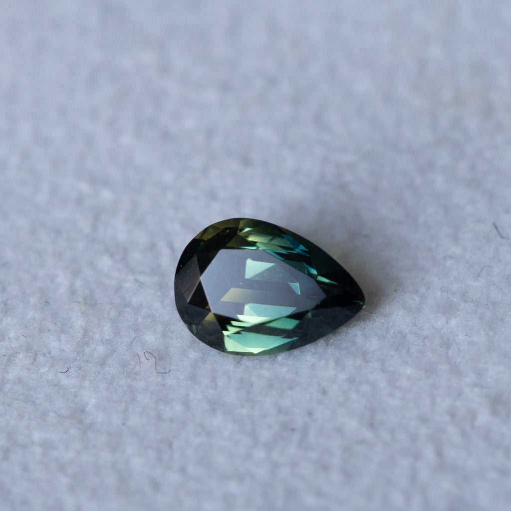 0.93CT PEAR AUSTRALIAN SAPPHIRE, DEEP PARTI TEAL AND GREEN, 7.41X5.08X3.23MM