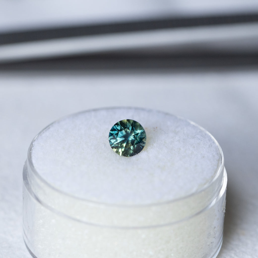 0.93CT ROUND AUSTRALIAN SAPPHIRE, PARTI BLUE TEAL GREEN, 5.43X4.06MM, UNHEATED