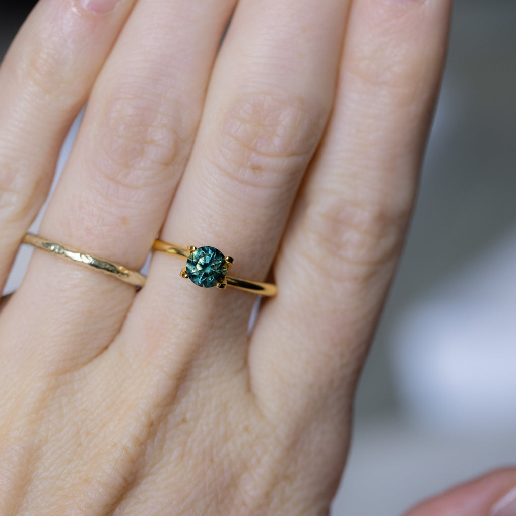 Petite but glittering parti teal sapphire mined in Australia. This sapphire is totally natural/untreated. It is not hazy, great clarity.