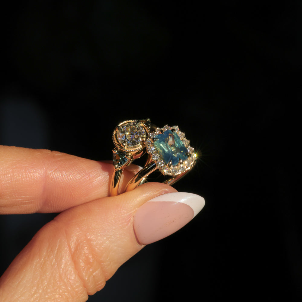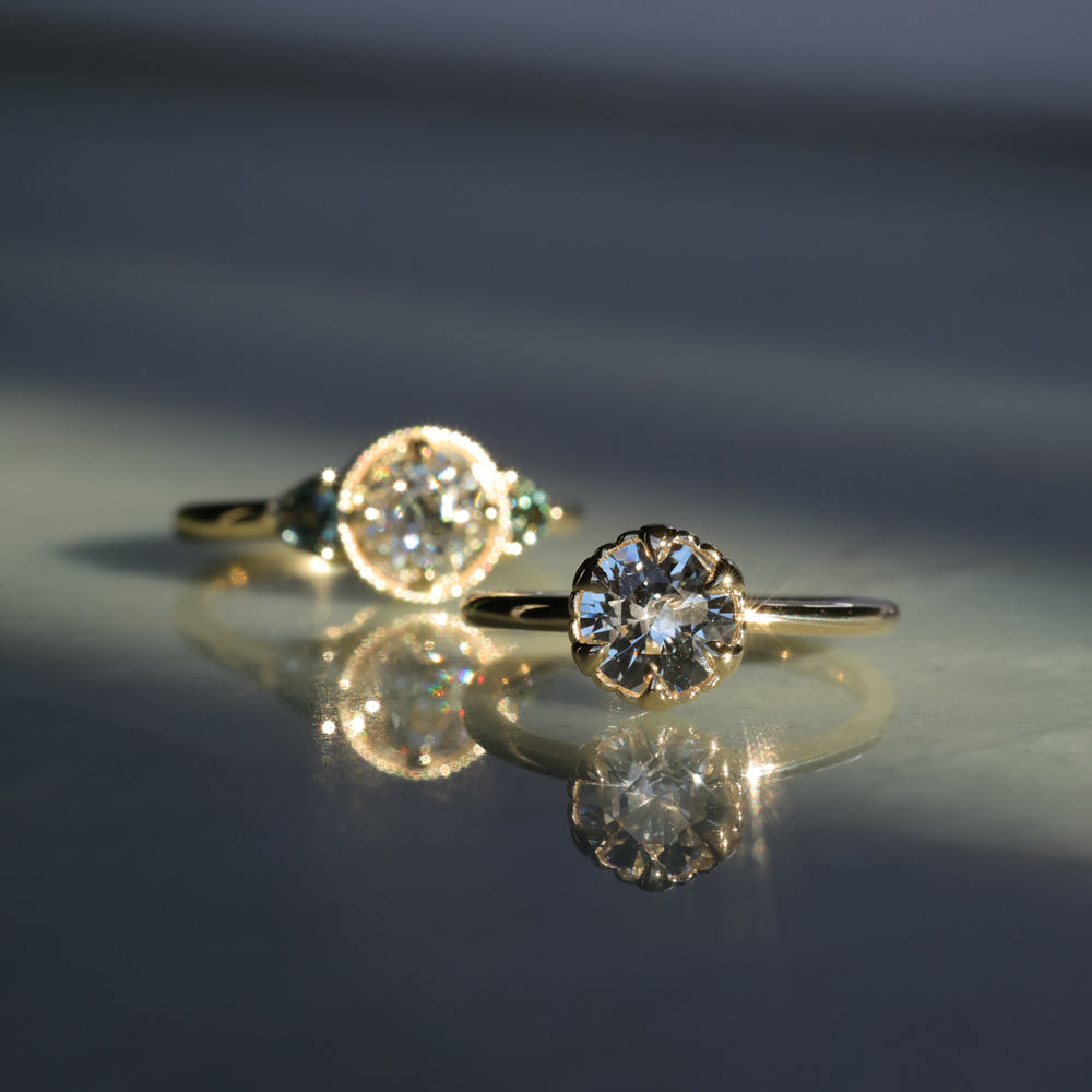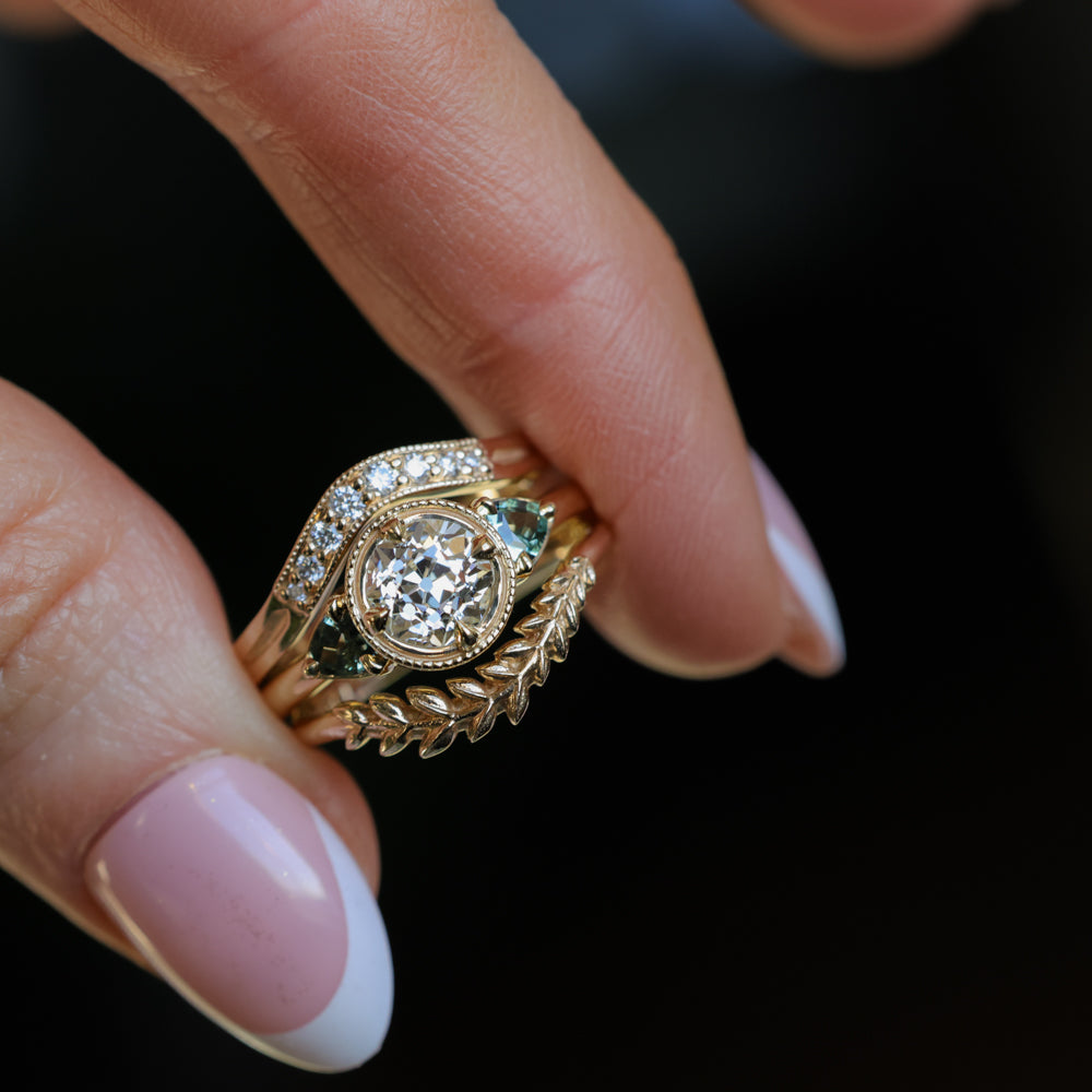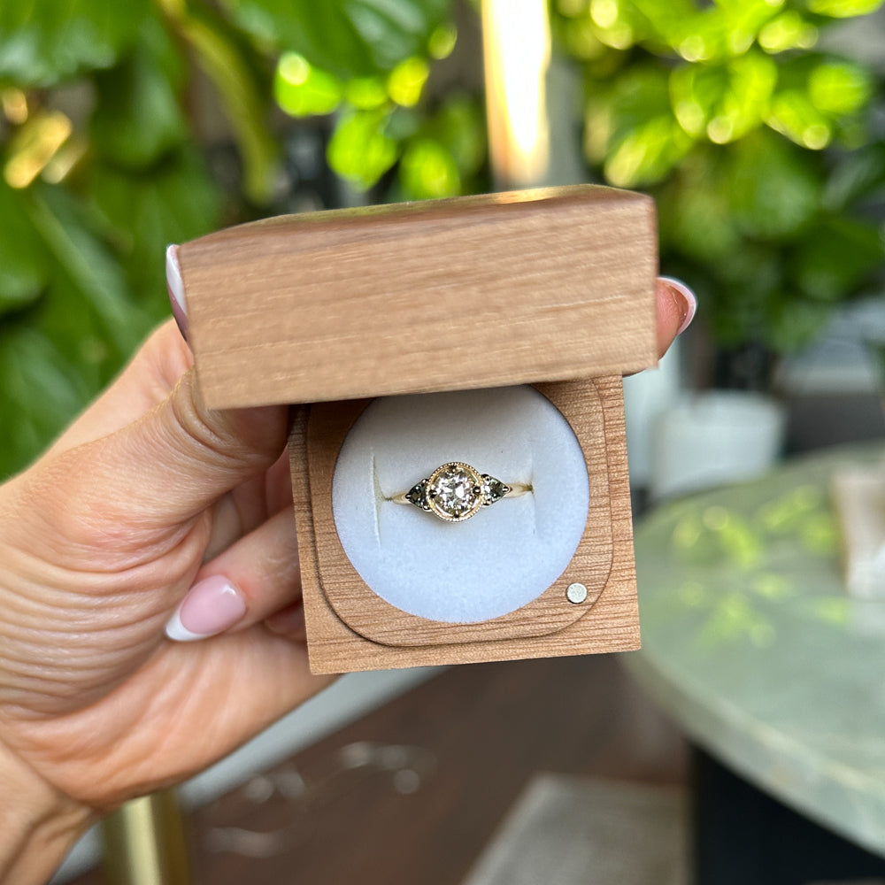 Rings will ship in an Anueva Jewelry ring box, with the exception of most bands which will ship in a ring pouch. The package will be insured and require signature confirmation. Please be sure to use an address that will have someone available to sign during mail delivery times. If providing a business address, please include the business name.
