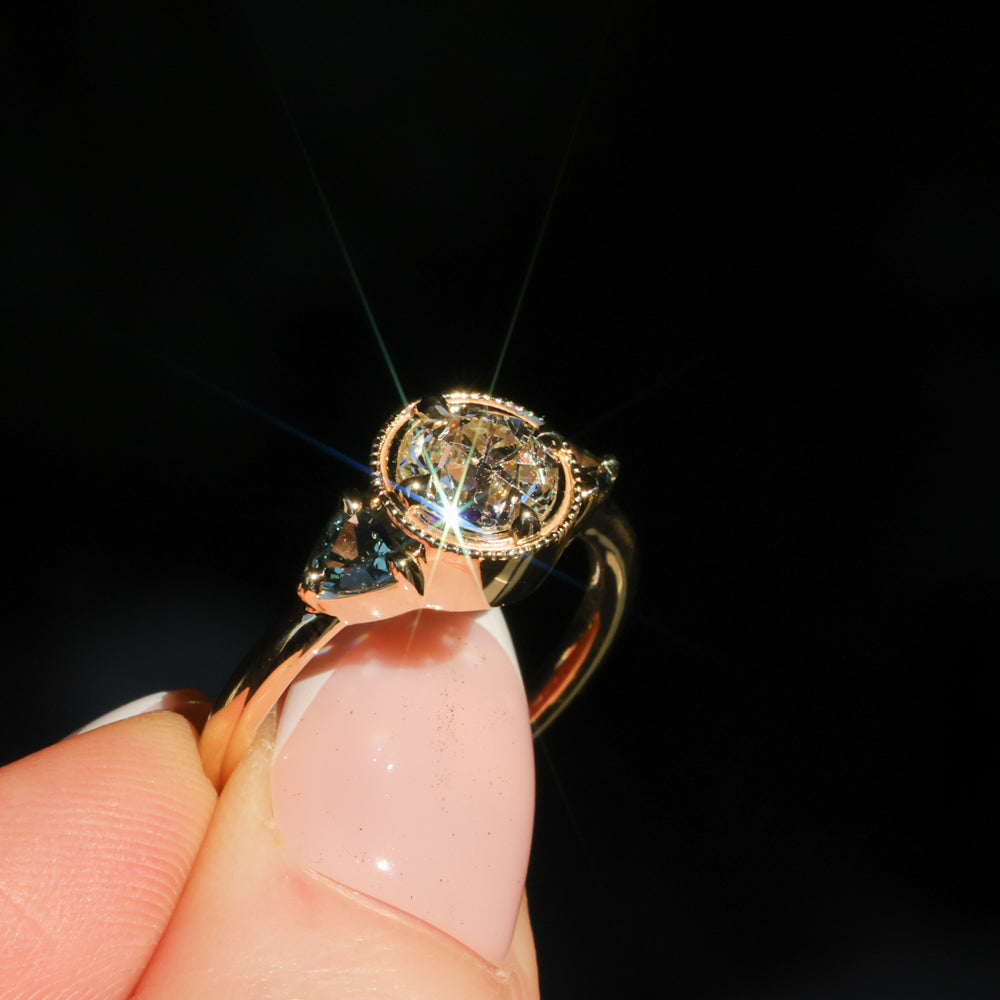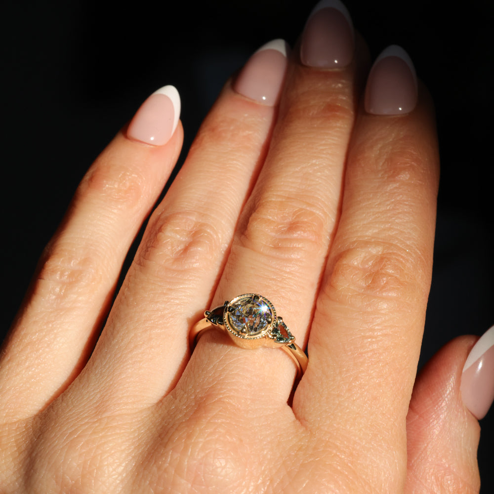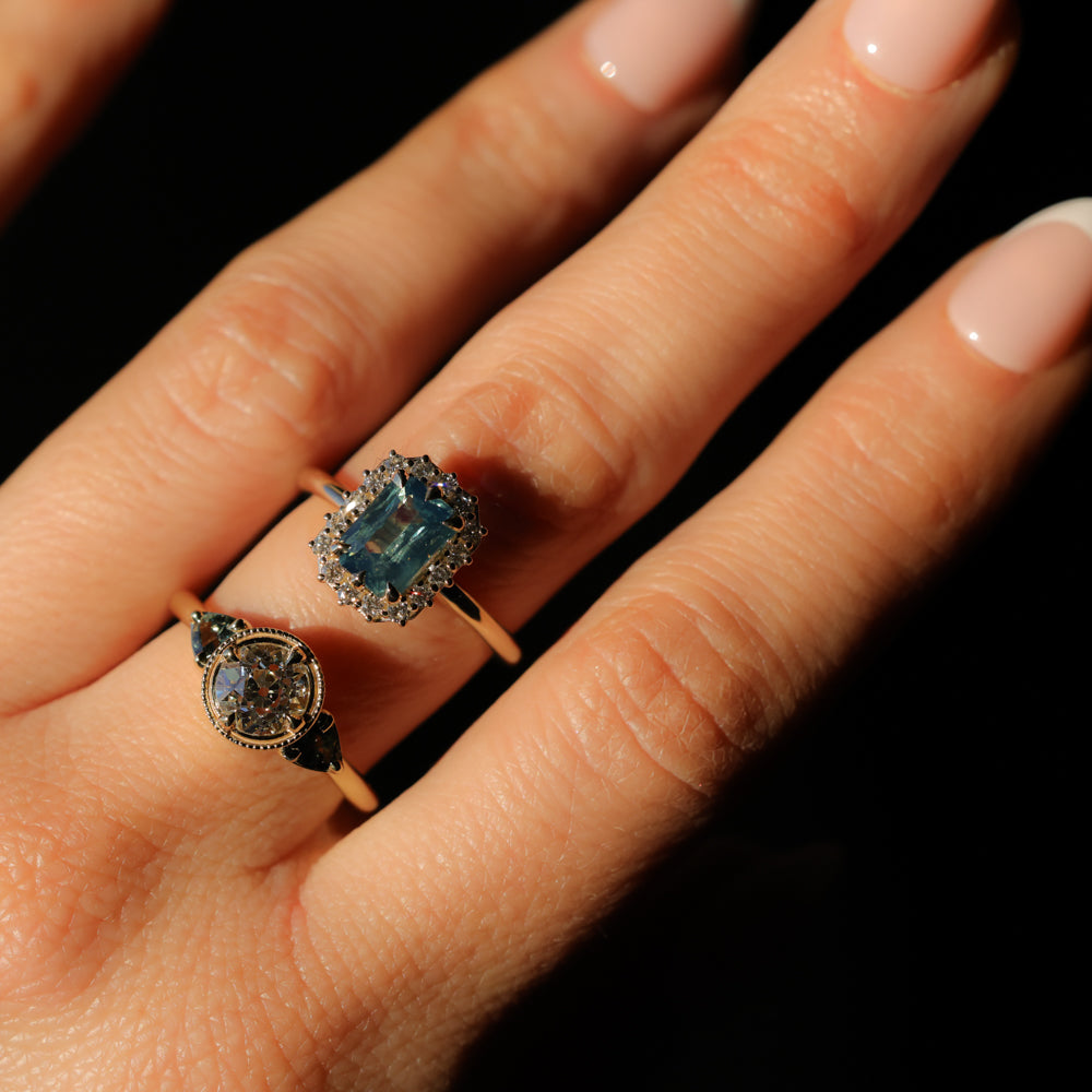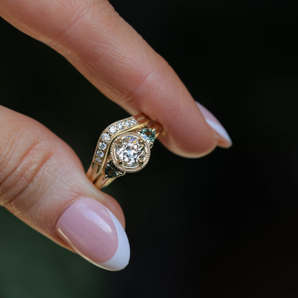 Rings will ship in an Anueva Jewelry ring box, with the exception of most bands which will ship in a ring pouch. The package will be insured and require signature confirmation. Please be sure to use an address that will have someone available to sign during mail delivery times. If providing a business address, please include the business name.