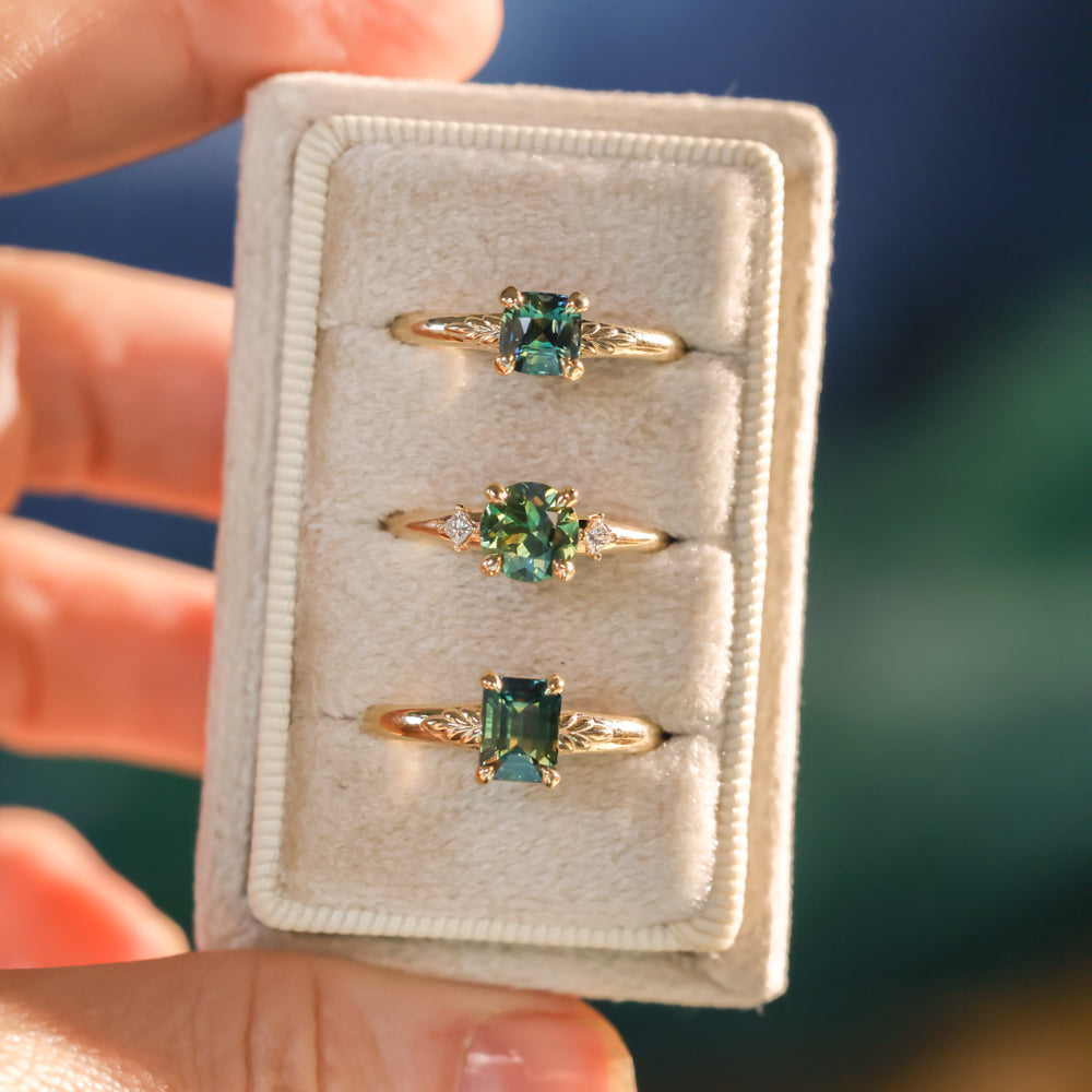 Rings will ship in an Anueva Jewelry ring box, with the exception of most bands which will ship in a ring pouch. The package will be insured and require signature confirmation. Please be sure to use an address that will have someone available to sign during mail delivery times. If providing a business address, please include the business name.