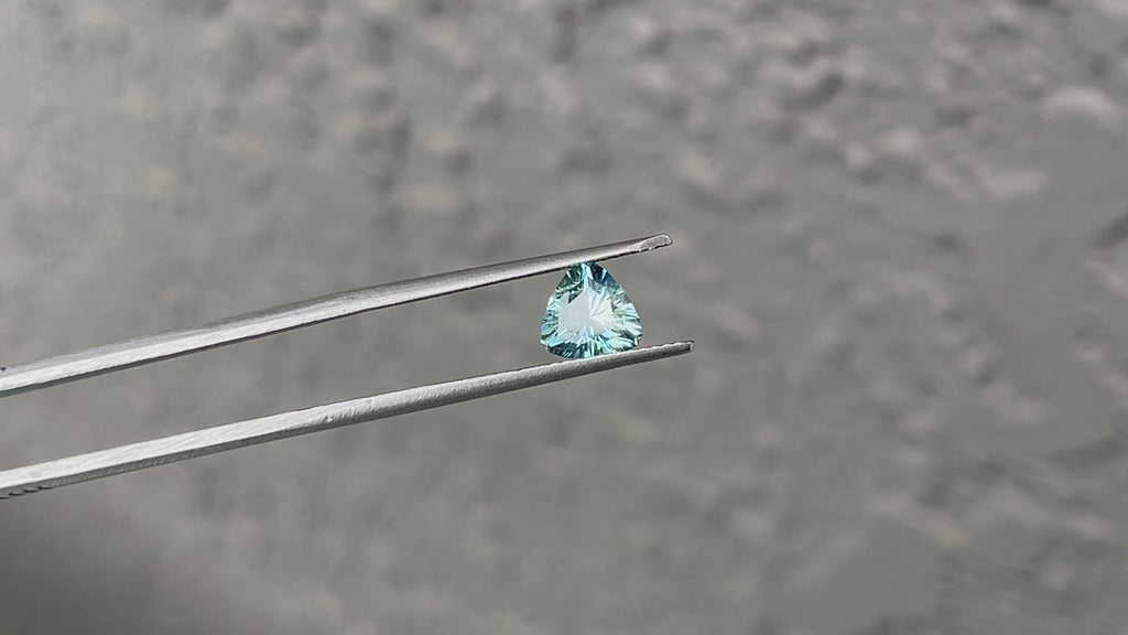 1.14CT PRECISION CUT TRILLION BRILLIANT MONTANA SAPPHIRE, COLOR SHIFTING LIGHT BLUE TEAL, 6.6MM