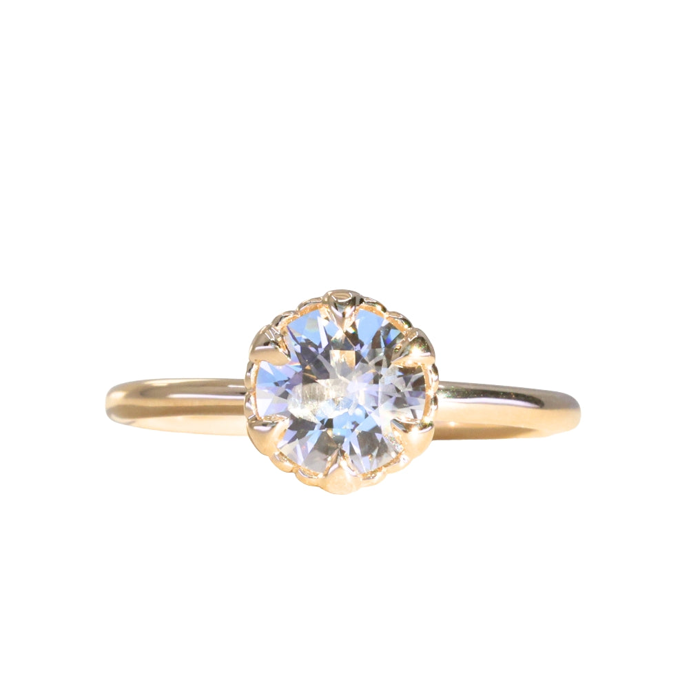1.14ct Round Silvery White Sri Lankan Sapphire Scallop Cup Solitaire in 14k Yellow Gold
