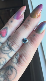 1.19CT ROUND PRECISION CUT MONTANA SAPPHIRE, OCEAN BLUE TEAL, 6X4MM. Mined in Rock Creek, Montana, USA, this sapphire has been given a precision, diamond-like cut for a modern look and maximum sparkle! It's a very clean stone with only some slight shimmery inclusions, typical for the region. The sapphire will brighten up a vibrant ocean blue teal in natural light and darken to more denim blue indoors with some purple, too.