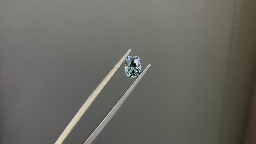 1.22CT PRECISION CUT RADIANT MONTANA SAPPHIRE, DENIUM TEAL BLUE GREEN, 7.2X5.2MM. Very clean, eye-clean clarity, rare for a sapphire from Montana. Maximum sparkle within this Montana sapphire! Mined and faceted in the USA. This sapphire has been heated, a permanent treatment for color and clarity. Will shift in color depending on the light available.