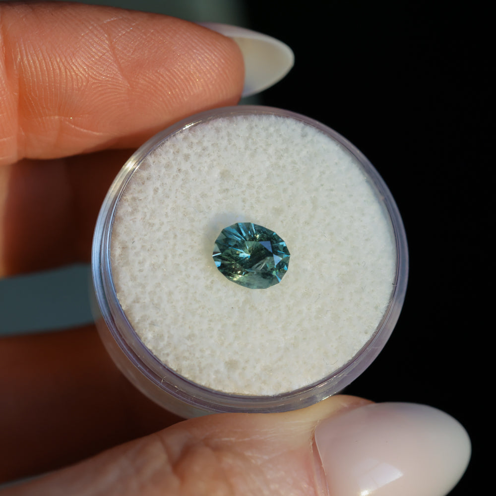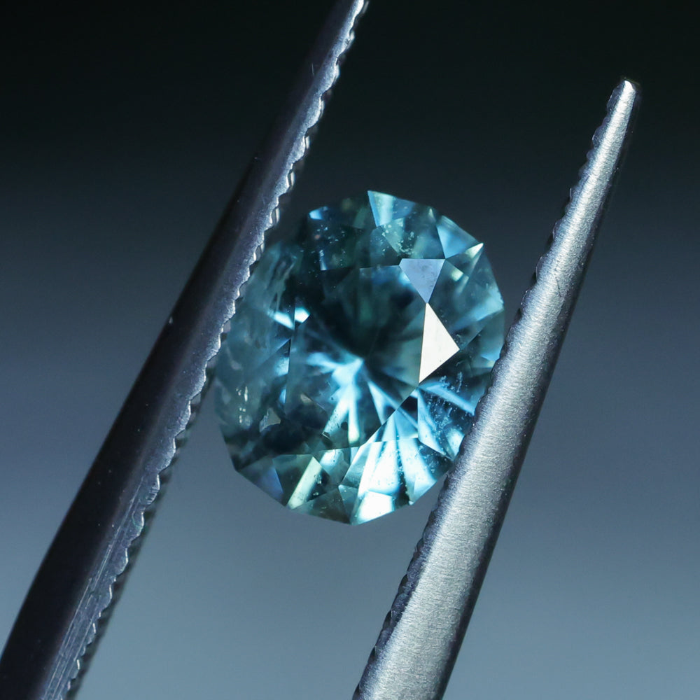 1.35CT PRECISION CUT OVAL MONTANA SAPPHIRE, LIGHT BLUE TEAL, 7.2X5.8X4.3MM