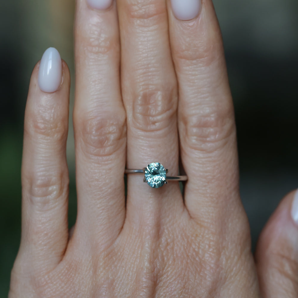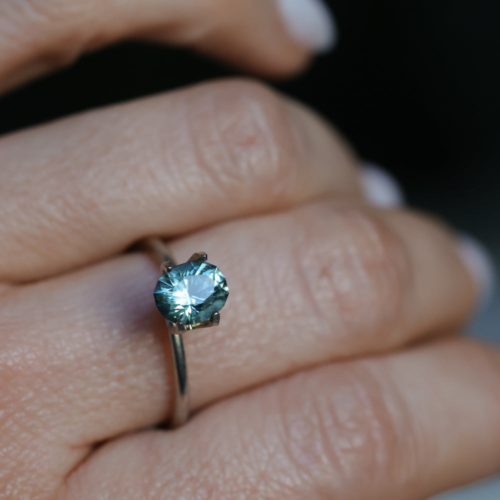 1.35CT PRECISION CUT OVAL MONTANA SAPPHIRE, LIGHT BLUE TEAL, 7.2X5.8X4.3MM. This sapphire was mined in Rock Creek, Montana, USA. Visible inclusions are common for sapphires from Montana, and make this an earthy stone for someone who doesn't mind those natural "birthmarks." The color is a highly desirable lighter teal blue-green and will shift in color from more green to more blue depending on the light available.