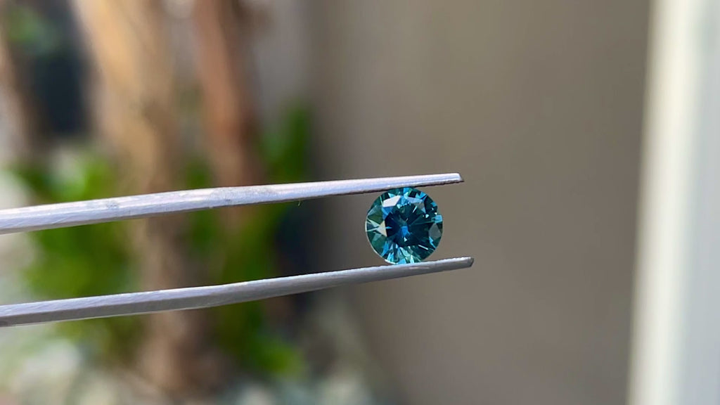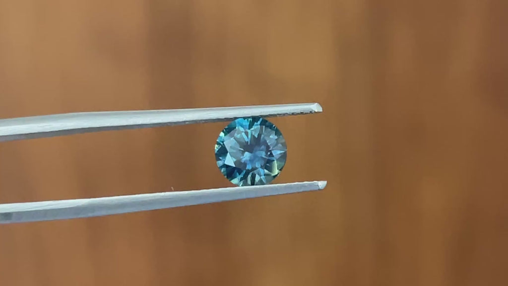 1.36CT ROUND PRECISION CUT MONTANA SAPPHIRE, BLUE GREEN, 6.5MM. This stunning Montana Sapphire, sourced from Rock Creek, Montana, features a classic round brilliant cut that enhances its captivating color and sparkle. With a perfect blend of blue and green hues, this gemstone radiates beauty.
