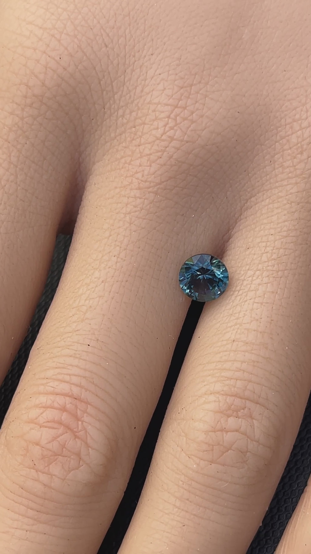 1.36CT ROUND PRECISION CUT MONTANA SAPPHIRE, BLUE GREEN, 6.5MM