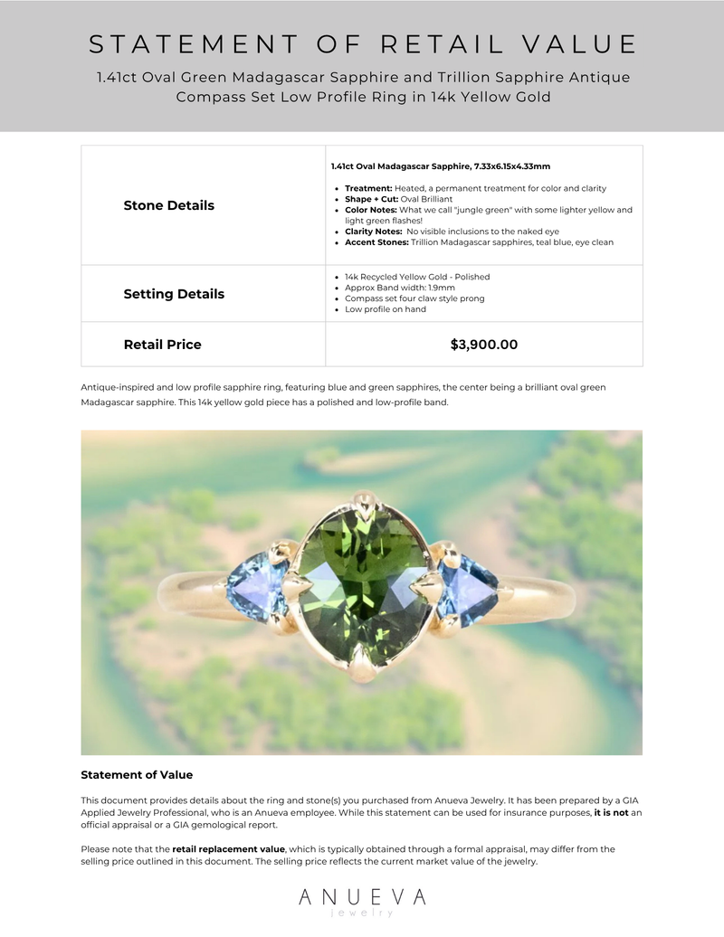 If you would like to have the ring appraised, there is a $175 appraisal fee that you can add to cart here. We will take the ring downtown to be appraised by a third party GIA gemologist appraiser and provide details for your insurance purposes. Please note, this can add approximately 2 weeks to your order timeline.