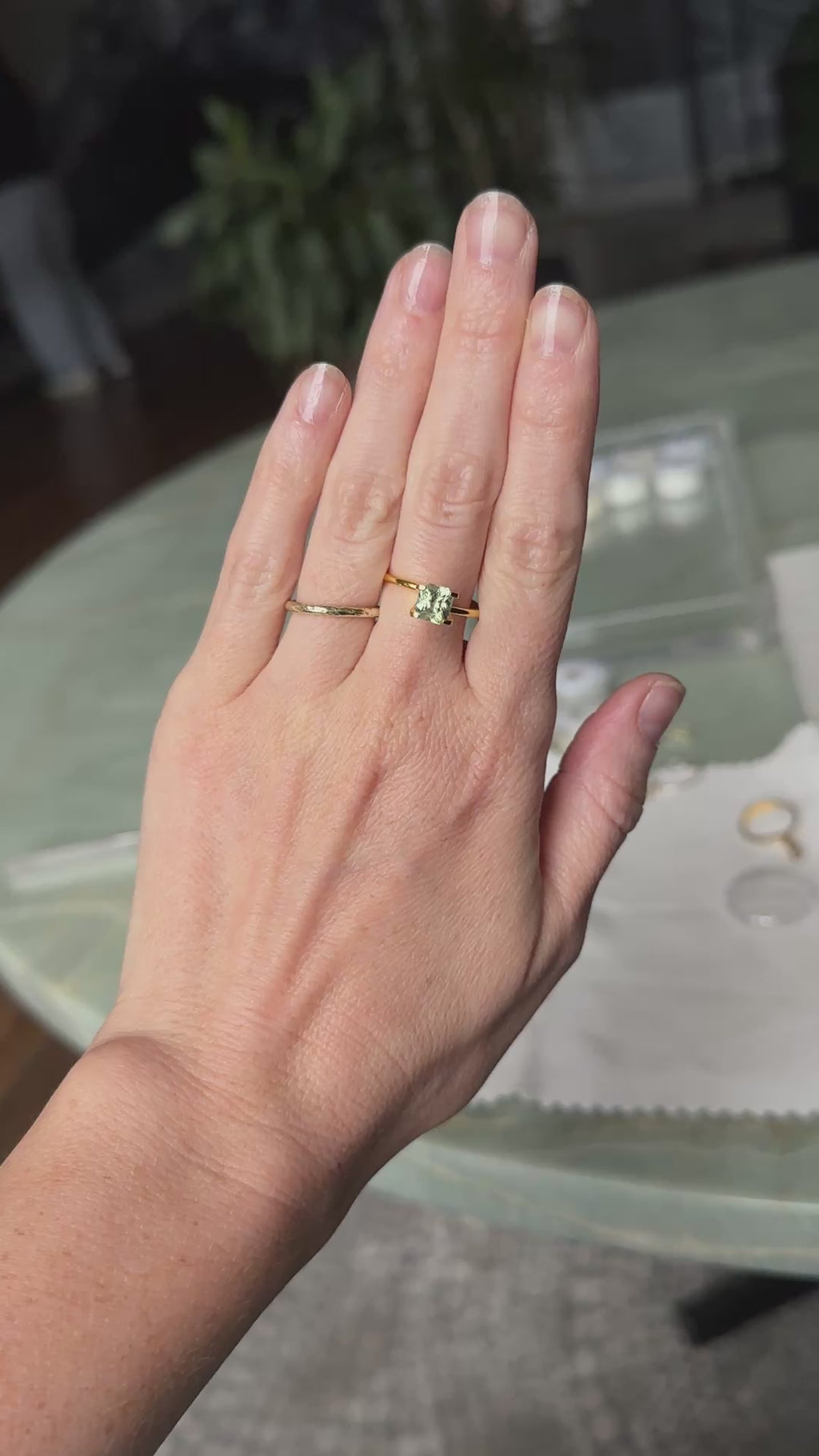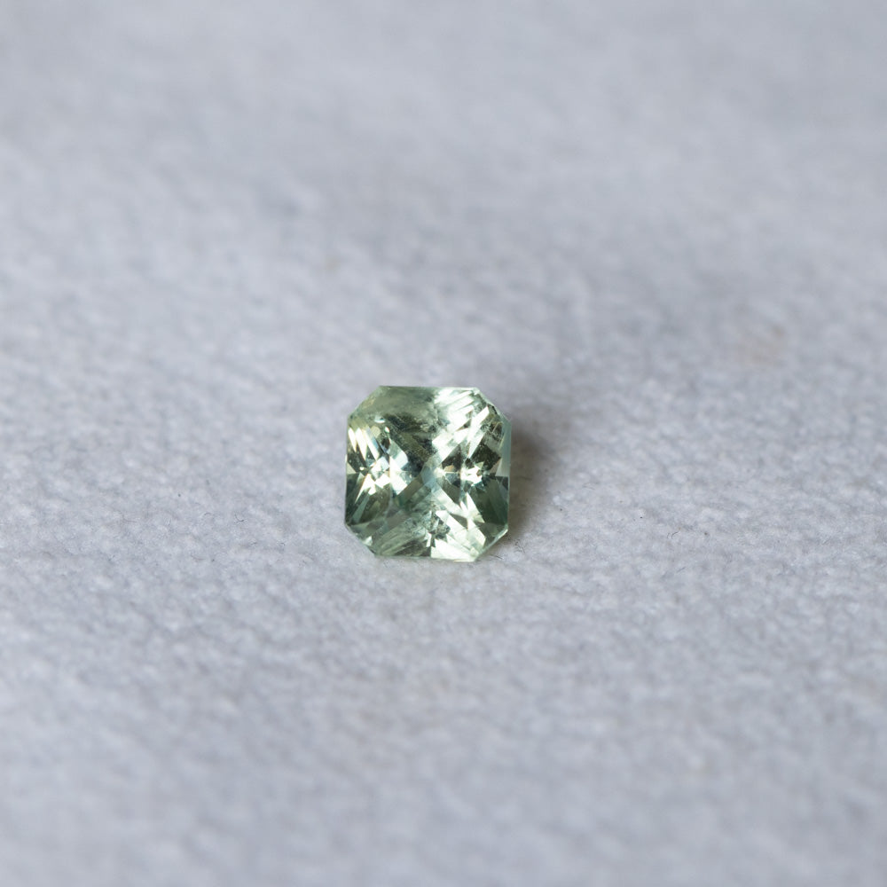 1.49CT RADIANT CUT MADAGASCAR SAPPHIRE, PARTI TEAL GREEN YELLOW, 6.00X5.75X4.38MM. Eye-clean and sparkling clarity. Will darken indoors. This sapphire is heated, a permanent treatment for color and clarity.