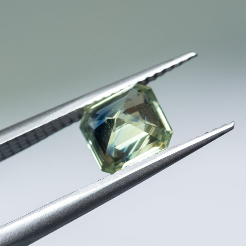 1.53CT RADIANT CUT MADAGASCAR SAPPHIRE, PARTI TEAL GREEN YELLOW, 6.28X5.92X3.89MM