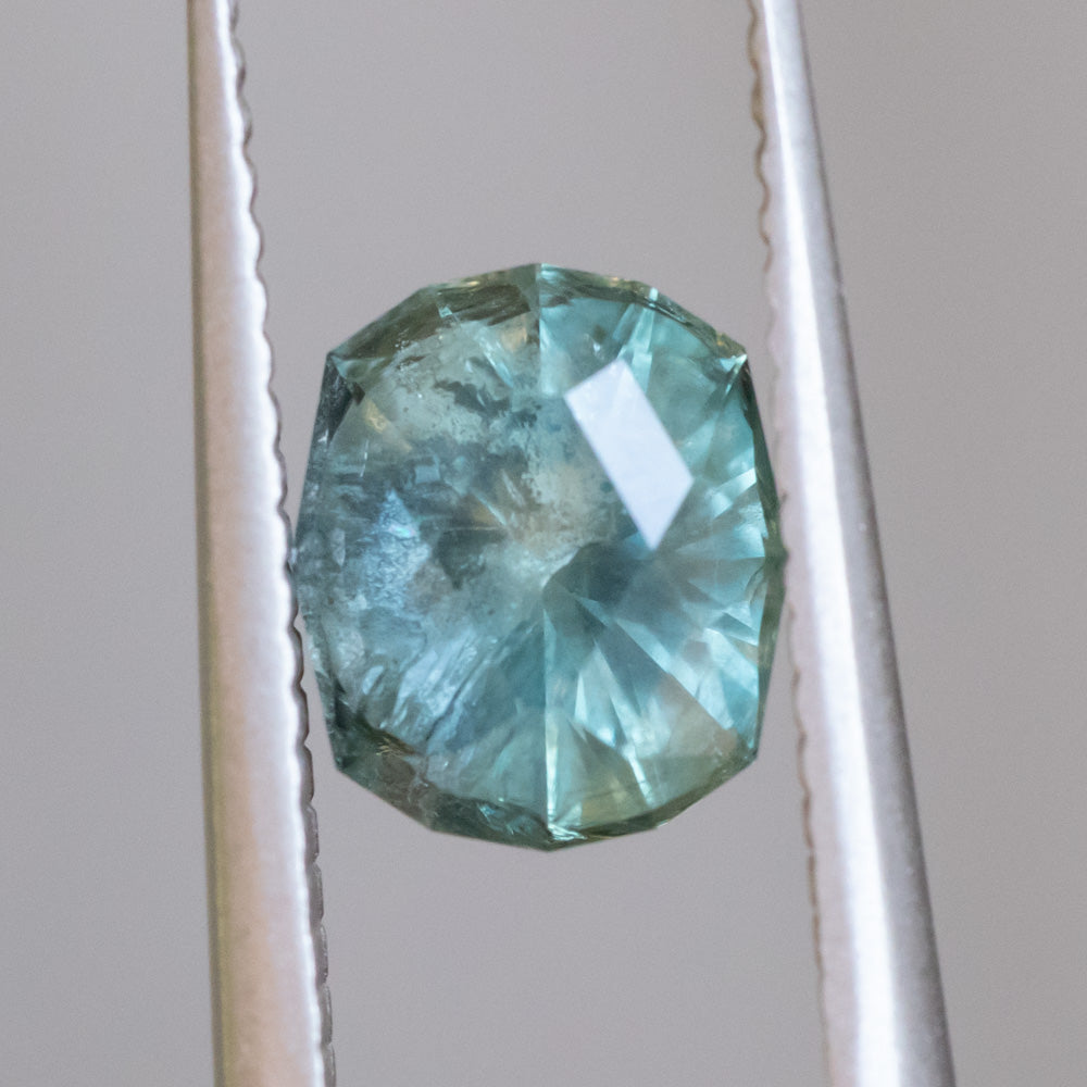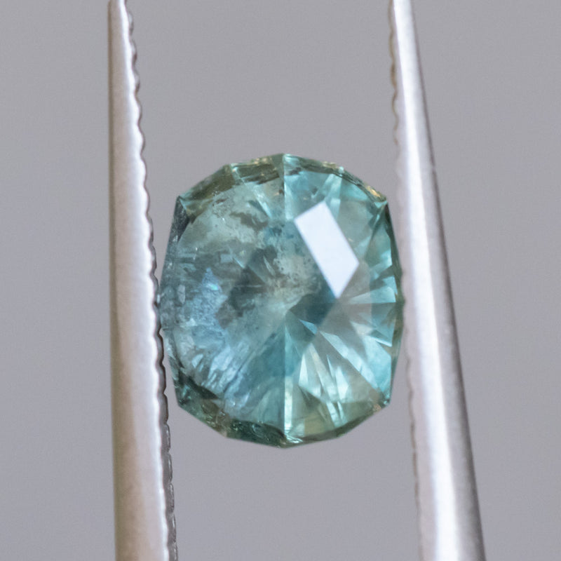 1.56CT FANCY ELONGATED PRECISION CUT CUSHION MONTANA SAPPHIRE, TEAL GREEN, 7.3X6.3X4.6MM