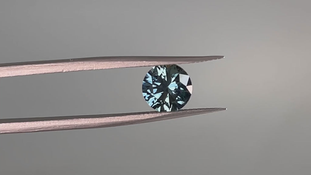 1.58CT PRECISION CUT ROUND BRILLIANT MONTANA SAPPHIRE, TEAL BLUE GREEN, 6.8MM. A diamond-like precision round brilliant cut, eye-clean clarity. Mined and faceted in the USA. This sapphire has been heated, a permanent treatment for color and clarity. Like most Montana sapphires, this stone will shift in color depending on the light available from more blue to more blue-green.