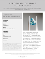 1.61CT HEART MADAGASCAR SAPPHIRE, SILKY PARTI TEAL BLUE GREEN, 7.33X6.50X4.37MM, UNTREATED