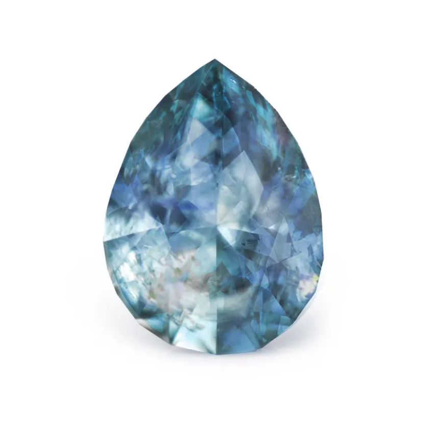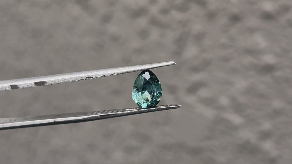 1.75CT PRECISION CUT PEAR BRILLIANT MONTANA SAPPHIRE, PARTI BLUE GREEN YELLOW, 8.5X6.5MM. A diamond-like precision pear brilliant cut, visibly included  clarity. Mined and faceted in the USA. This sapphire has been heated, a permanent treatment for color and clarity. Fun and earthy parti teal blue, green and yellow coloring. Will shift in color from vibrant blue green/teal to more traditional blue, depending on the light available.