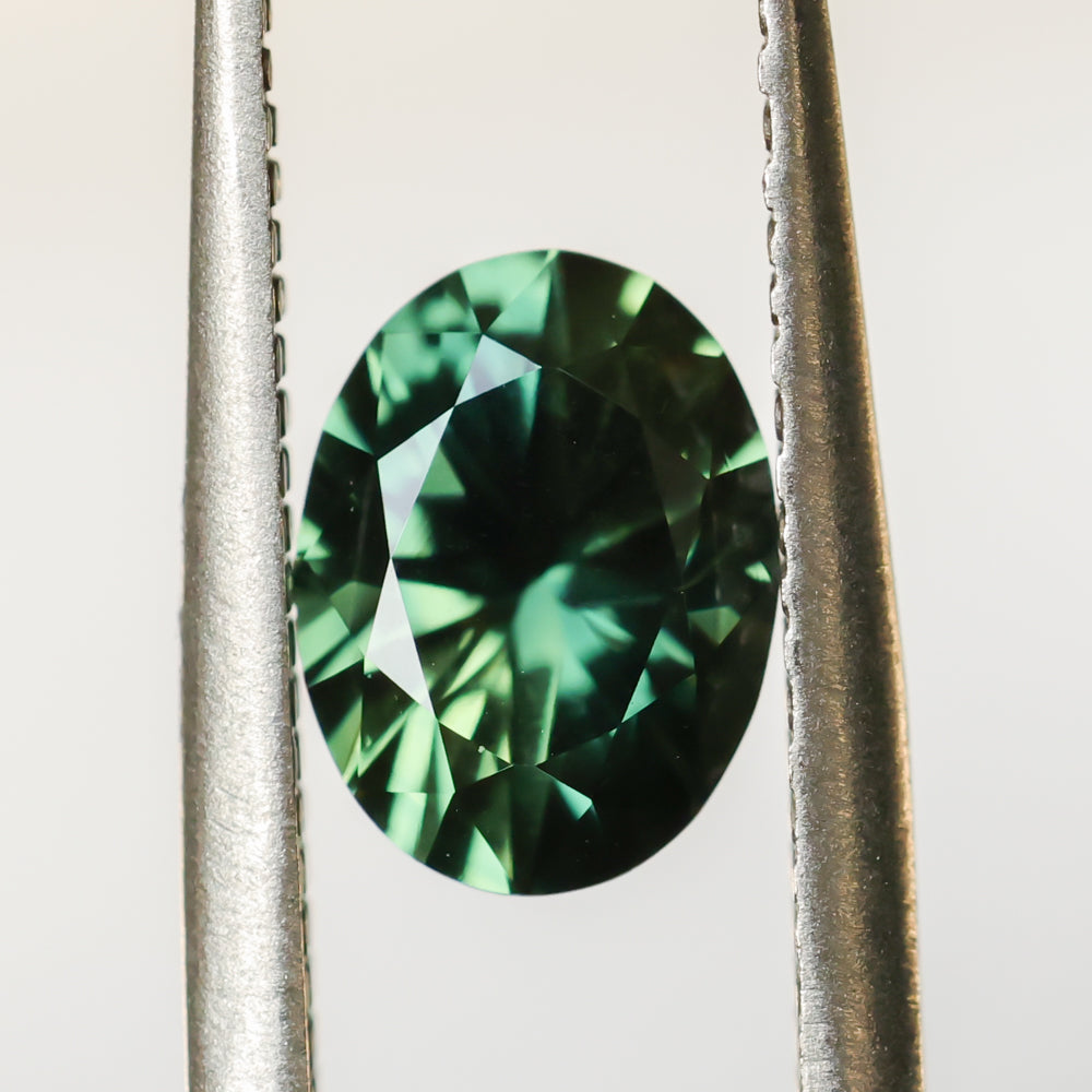 1.90CT OVAL BRILLIANT AUSTRALIAN SAPPHIRE, TEAL GREEN, UNTREATED, 7.95X5.98X4.72MM. Totally natural/untreated teal green sapphire from Australia cut in a diamond-like oval brilliant design. Will darken indoors, but still flashes with lighter green!