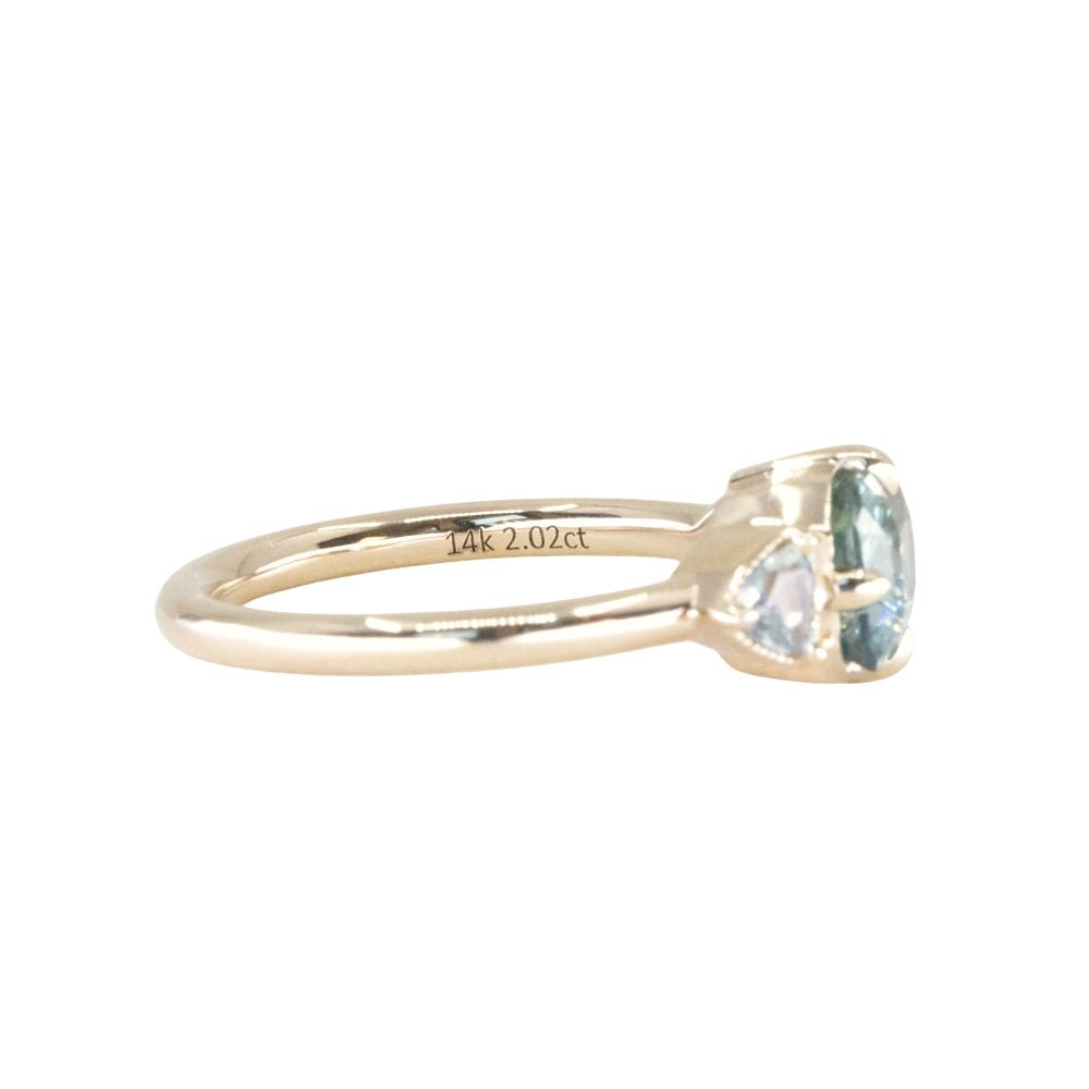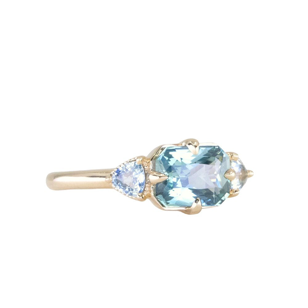 2.02ct Untreated Blue Radiant Cut Sapphire and Trillion Sapphire Antique Compass East-West Set Low Profile Ring in 14k Yellow Gold