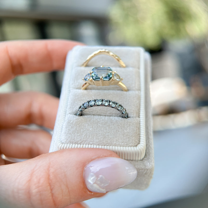Rings will ship in an Anueva Jewelry ring box, with the exception of most bands which will ship in a ring pouch. The package will be insured and require signature confirmation. Please be sure to use an address that will have someone available to sign during mail delivery times. If providing a business address, please include the business name.