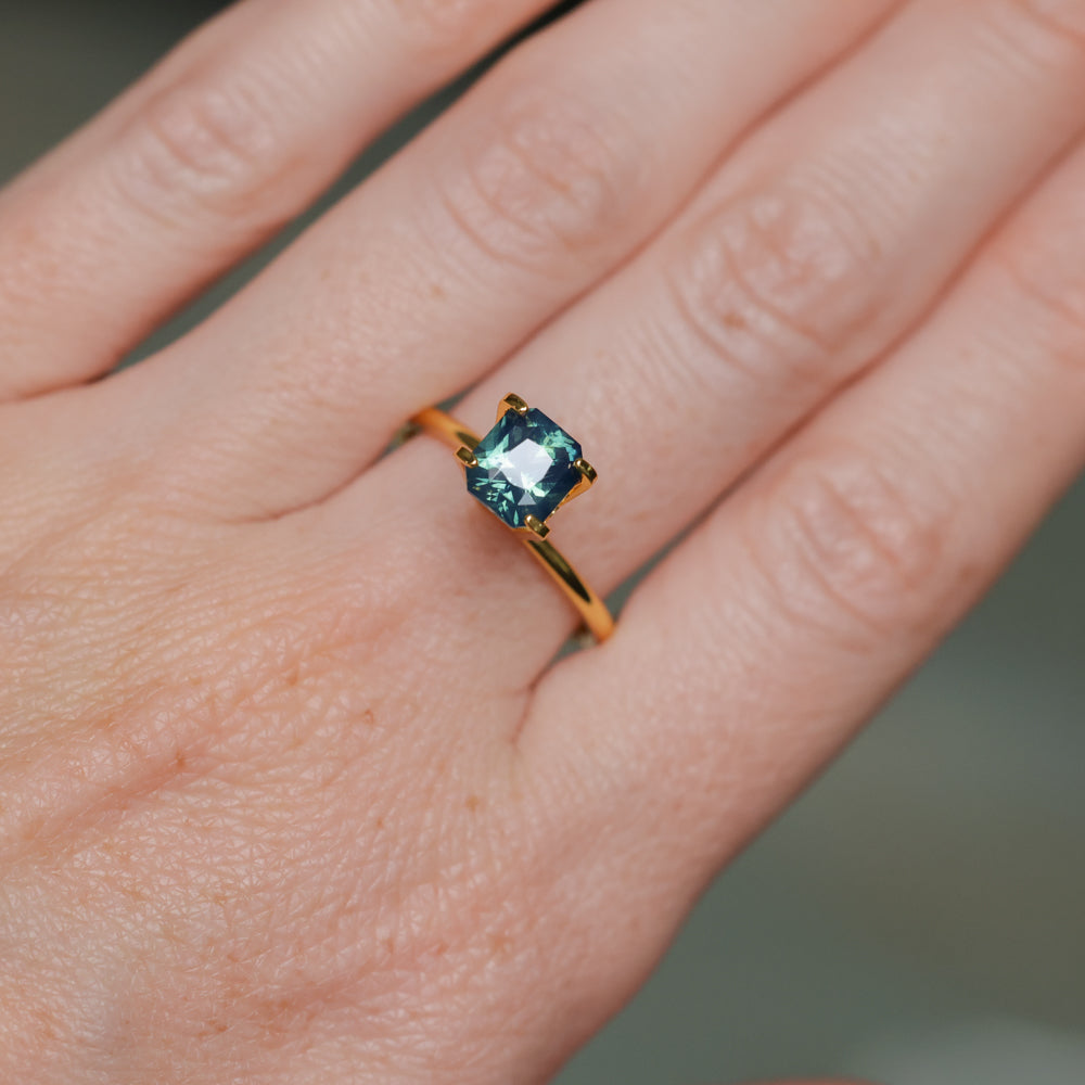 2.03CT MADAGASCAR RADIANT SAPPHIRE, GLOWY TEAL BLUE, UNTREATED, 6.7X6.09X4.7MM