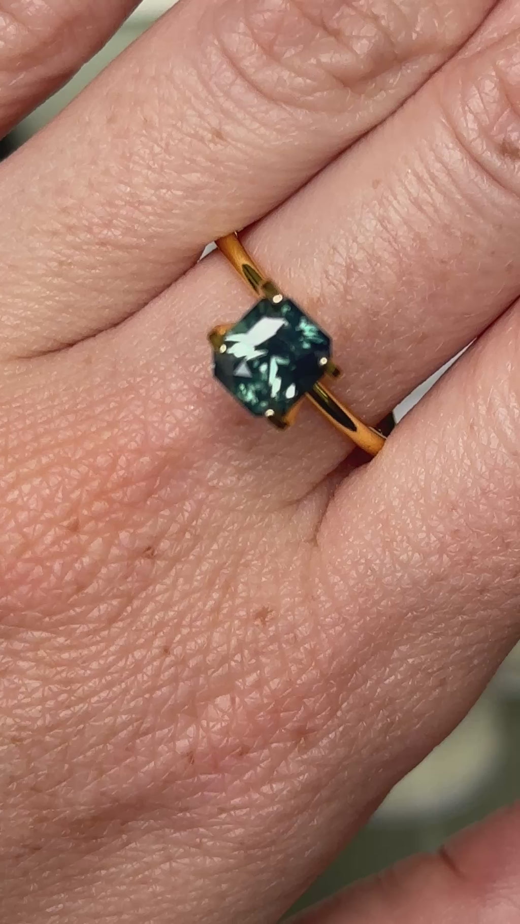 Totally natural/untreated Madagascar sapphire featuring a glowy teal, with even, inner silk that glows in natural light. Indoors, it is more green with lighter green flashes. Eye clean clarity!