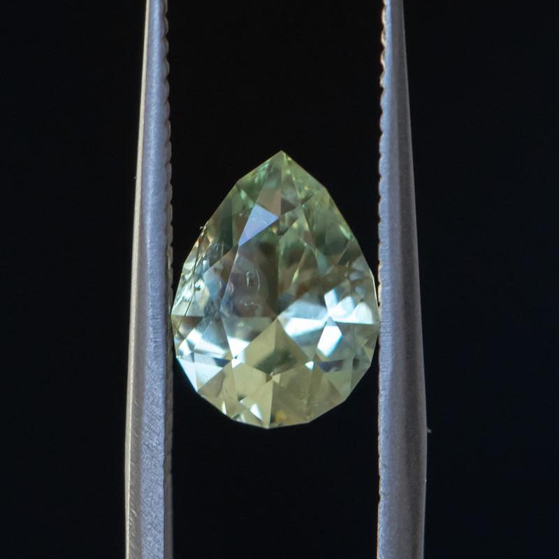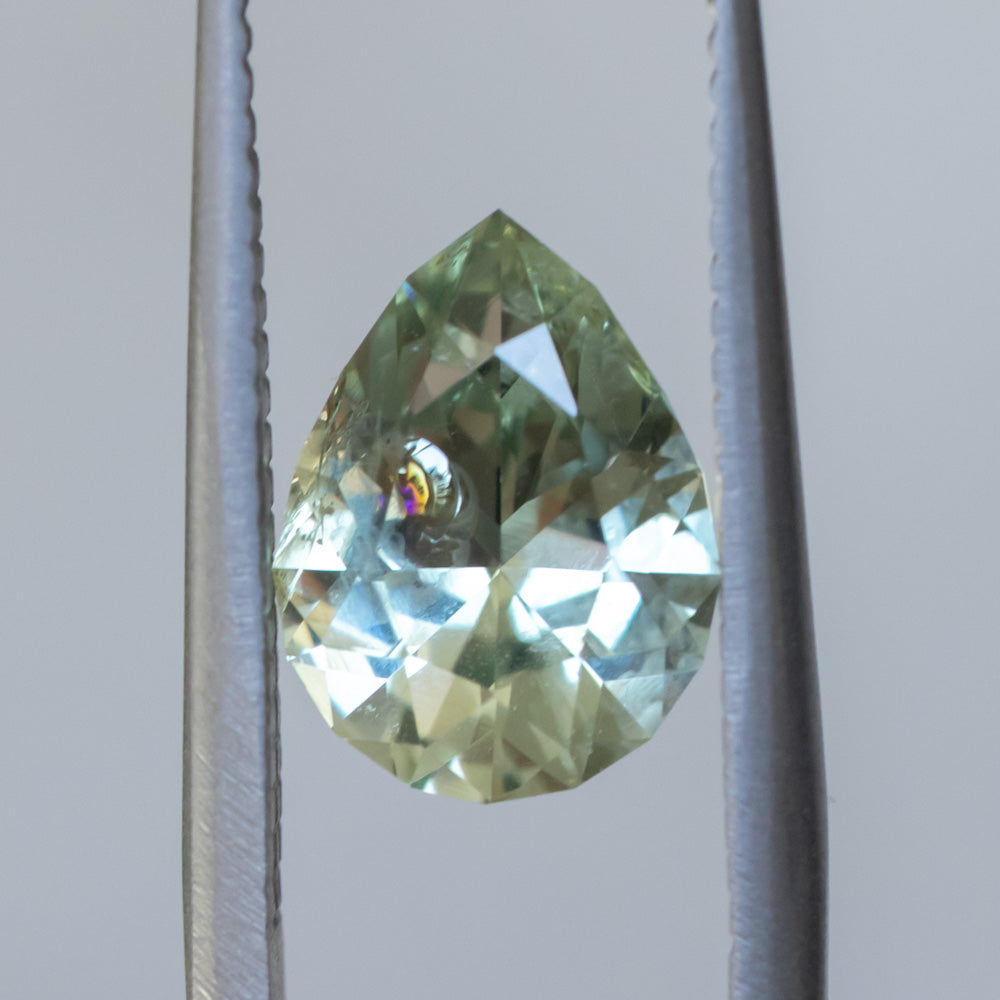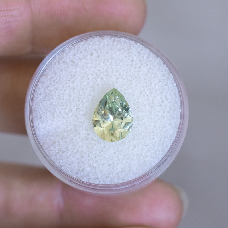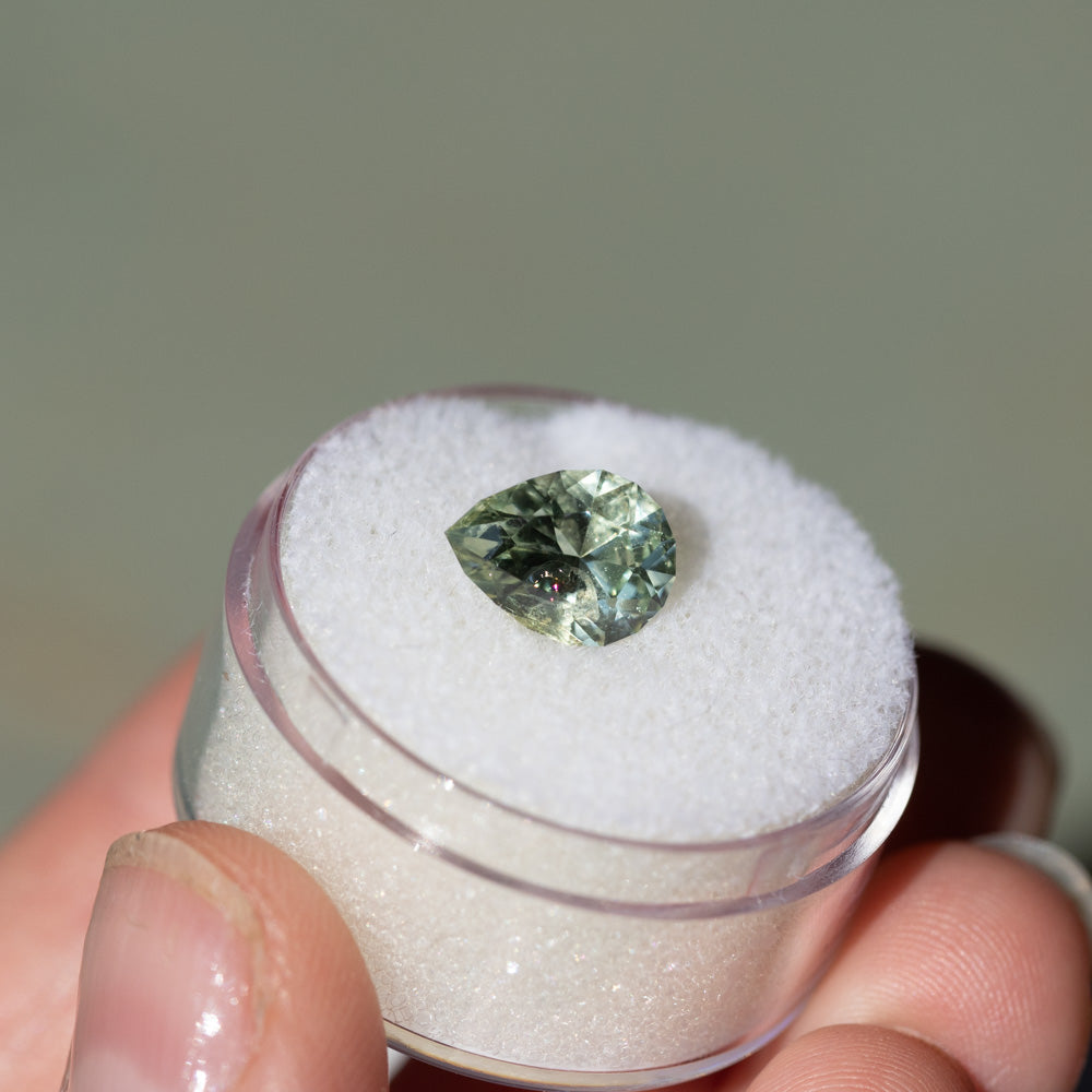 2.22CT PRECISION CUT PEAR MONTANA SAPPHIRE, LIGHT SPRING AND SEAFOAM GREEN, 10.24X7.31X4.61MM