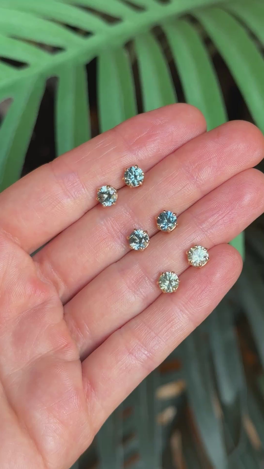 Pair B- 1.36ctw round teal Montana sapphires in 14k yellow gold